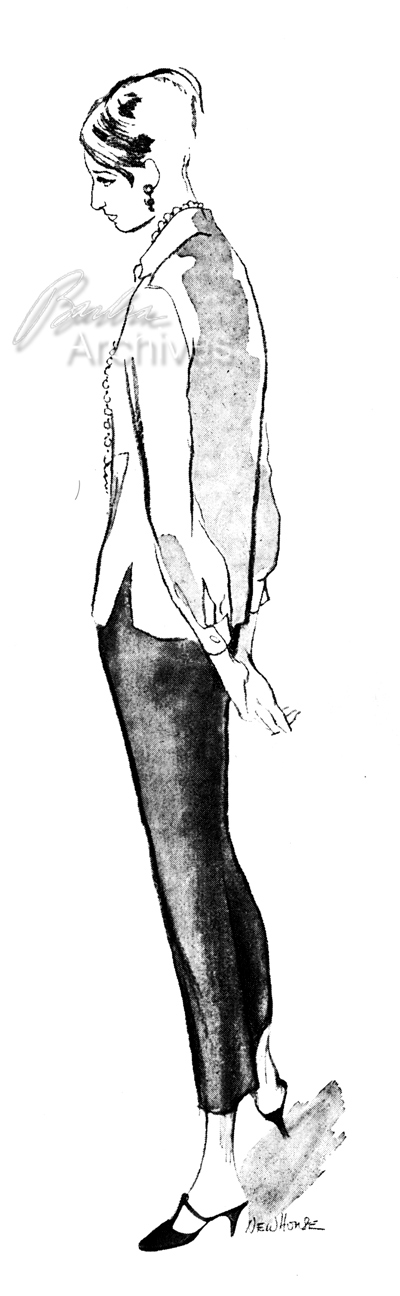 The more usual way to achieve the long narrow look is, of course, with slacks or pants. And I