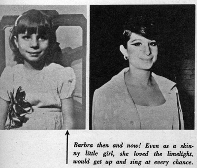 “Barbra was so busy and deep in her plans and dreams for the future, she almost stopped communicating,” Mrs. Kind says. “But she kept her promise to stay in school. I was proud when she graduated with a 93 average, after spending her evenings with props, moving scenery and dusting the seats at the theater.