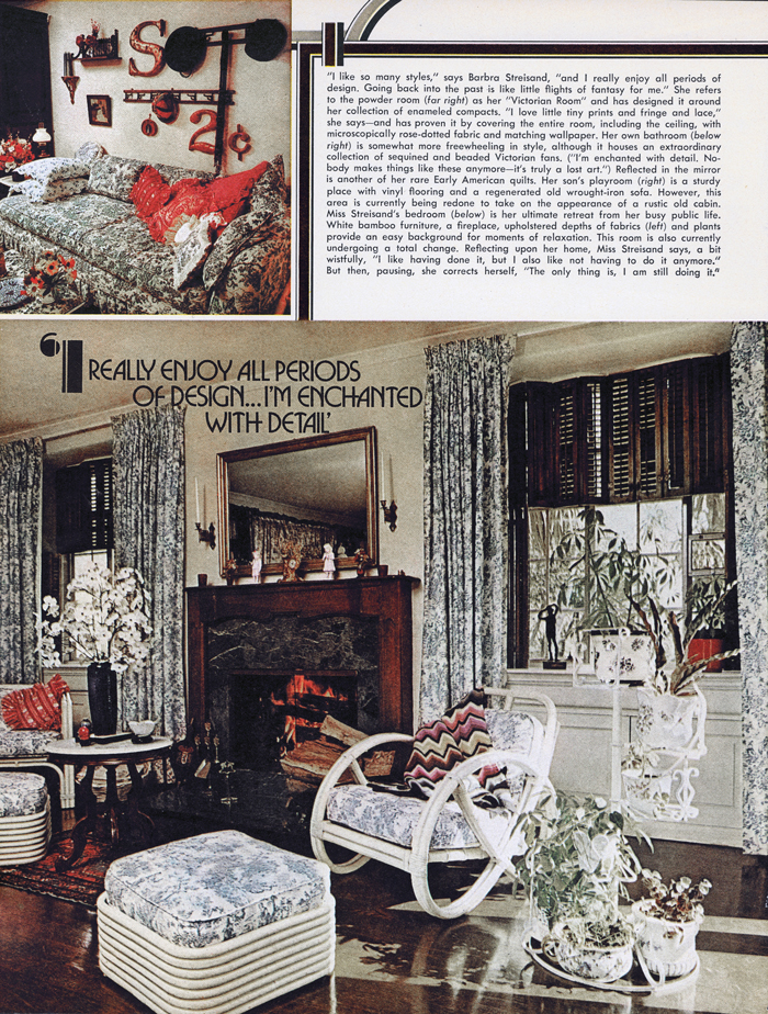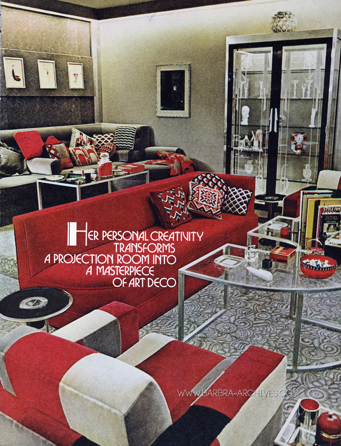 BELOW: Juliens Auctions auctioned Streisand's Howard Robin Deco-style club chairs, upholstered in polychrome velvet.